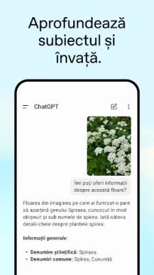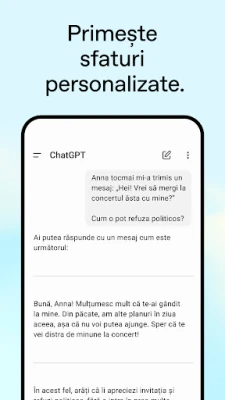 Interacțiunea devine mai fluidă și mai intuitivă ca niciodată. Cu Modul Vocal, activat printr-o simplă atingere a pictogramei căștilor, puteți vorbi liber cu inteligența artificială în timp ce sunteți în mișcare, transformând plimbările în sesiuni de povestiri captivante pentru copii sau rezolvând dilemele cotidiene din timpul mesei. Funcția de încărcare a fotografiilor vă permite să transcrieți rapid o rețetă scrisă de mână sau să obțineți informații detaliate despre un monument istoric pe care îl explorați. Descoperiți o sursă inepuizabilă de inspirație creativă, de la idei originale de cadouri la crearea unor felicitări personalizate, și beneficiați de consiliere adaptată nevoilor dumneavoastră, fie că e vorba de elaborarea unui răspuns personalizat sau de ghidare într-o situație complexă.