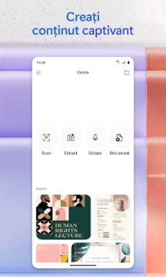 Gestionarea documentelor devine simplă și eficientă. Scanați cu ușurință documente fizice, fotografii sau note direct cu camera telefonului. Încărcați fișiere Word, Excel sau PDF existente de pe dispozitivul dumneavoastră pentru a le procesa cu Microsoft 365 Copilot și salvați orice creație generată de AI direct în memoria telefonului. Aplicația reunește funcționalitățile cheie din Word, Excel, PowerPoint și PDF, oferindu-vă un centru mobil complet pentru editare și creare din mers. Simplificați-vă proiectele prin adunarea ideilor, documentelor și linkurilor într-un singur loc, iar Copilot le va rezuma și conecta în blocnotesurile dedicate. Pentru a începe să beneficiați de aceste avantaje, conectați-vă cu contul dumneavoastră Microsoft de la locul de muncă, de la școală sau cel personal.