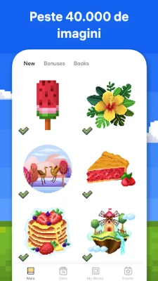 Experiența Pixel Art este mereu proaspătă și captivantă. Descoperiți zilnic noi imagini de colorat, de la mandale complexe la peisaje florale încântătoare, toate disponibile gratuit pentru a vă menține inspirația vie. De asemenea, puteți participa la Evenimente de sezon speciale, unde imagini tematice unice vă așteaptă să le oferiți culoare, oferindu-vă bonusuri exclusive pentru colecția dumneavoastră. Nu ratați Grădina de flori, o funcționalitate inovatoare în care construiți și personalizați propria grădină, câștigând recompense pe măsură ce dați viață unor obiecte unice. Iar pentru o notă cu adevărat personală, Pixel Art Camera vă permite să vă pixelați fotografiile preferate, ajustând dificultatea pentru o experiență de colorat adaptată preferințelor dumneavoastră.