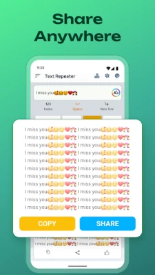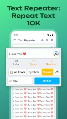 Transformă-ți mesajele obișnuite în convorbiri captivante cu aplicația Text Repeater! Descoperă funcții intuitive, suport pentru emoji și multiple opțiuni de formatare a fonturilor. Este instrumentul ideal pentru a-ți face mesajele să iasă în evidență și să capteze atenția.