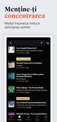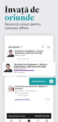 Experiența ta de învățare cu Udemy este amplificată de o serie de instrumente concepute pentru confort și eficiență. Poți accesa materialele oricând, oriunde, grație opțiunii de utilizare offline, asigurându-te că dezvoltarea ta nu se oprește niciodată. Proiectează conținutul pe ecranul mare prin Chromecast pentru o vizualizare imersivă și protejează-ți ochii cu modul întunecat. Nu uita niciodată o lecție importantă cu memento-urile personalizate și salvează informațiile esențiale cu funcțiile de notițe și marcaje. Verifică-ți progresul prin chestionare rapide și obține răspunsuri sau îndrumări directe de la instructori, atunci când ai nevoie. În plus, accesul pe termen nelimitat la resurse îți permite să revii oricând asupra informațiilor, consolidându-ți cunoștințele.