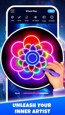 "Visual Wheel Art – Spin and Draw" este aplicația supremă pentru artă prin rotire și desen. Descoperă creativitatea, eliberează stresul și bucură-te de artă relaxantă. Rotește roata pentru a desena modele luminoase și experimentează arta virtuală spin art.