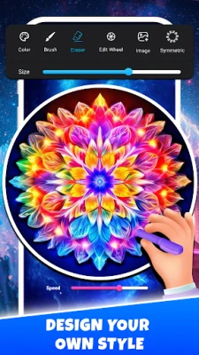Devino un maestru al artei circulare cu instrumentele intuitive puse la dispoziție de Visual Wheel Art - Spin & Draw. Aplicația îți oferă libertatea de a alege dintr-o gamă variată de pensule personalizabile, de la cele clasice la cele luminoase, ce creează efecte neon vibrante, transformând fiecare lucrare într-o operă ce strălucește. Explorează modul de desen simetric pentru a crea mandale perfecte și flori geometrice, dublându-ți ingeniozitatea cu modele în oglindă. Pentru începători sau pentru cei ce doresc să-și perfecționeze tehnica, ghidurile pas cu pas facilitează învățarea, de la forme elementare la compoziții complexe.