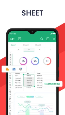 Pe lângă inteligența artificială, WPS Office rămâne un pilon al eficienței pe dispozitivul dumneavoastră Android. Accesați o gamă largă de șabloane predefinite pentru a începe rapid lucrul la documente Word, foi de calcul, prezentări și bugete, transformând ideile în realitate. Convertiți și procesați documente, PDF-uri și imagini fără efort, având la dispoziție instrumente avansate. Revoluționați modul în care gestionați fișierele PDF cu cititorul integrat, care nu doar le deschide, ci permite adnotarea, semnarea electronică, divizarea sau unificarea acestora. Chiar și documentele scanate pe hârtie pot fi transformate în PDF-uri editabile cu ajutorul tehnologiei OCR avansate de la WPS AI.